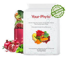Your-Phyto sisältää samat ainekset kun Pomi-T, mutta siinä on sen lisäksi kaksi tärkeää ainesosaa, karpalo ja inkivääri.